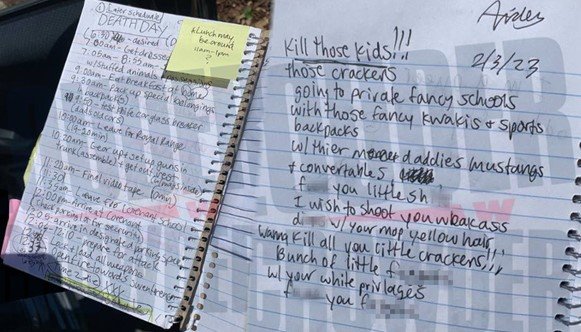“Kill those kids!!! Those crackers. Going to fancy private schools, with those fancy khakis and sports backpacks. With their daddies Mustangs, and convertibles. F**k you little s***s! I wish to shoot you weak-ass d***s with your mop-yellow hair. Wanna kill all you little crackers!!! Bunch of little faggots, with your white privileges. F**k you faggots!!”