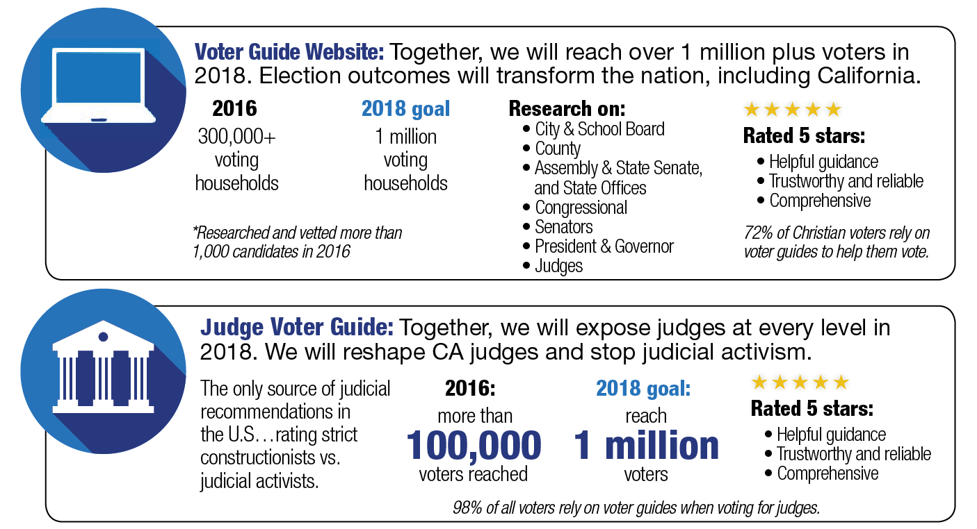 - Researching of candidates, judges and propositions – mobilizing voters to vote for, not against, their values