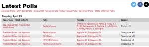 The latest poll for the democrats from RealClear Politics show this. You can read another article here: Did You Take our 2024 Presidential Poll? |